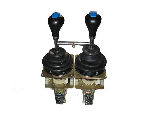 機械傳動部份裝在箱體上部的罩內(nèi),該傳動機構(gòu)分為單手柄聯(lián)動操縱機構(gòu)、抓斗雙手柄操縱機構(gòu)、主付鉤雙手柄操縱機構(gòu)、單手柄操縱機構(gòu)以及單手柄水平操縱機構(gòu)。手柄運動都是用直齒齒輪傳動凸輪軸的。控制器的凸輪軸均為立式布置,傳動部份各支點全部用滾動軸承,以降低功率損耗。